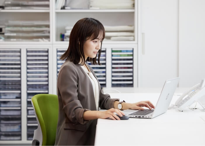 メーカーへ見積りやサンプルの手配、週末の打合せに向けて提案資料を作成します。また、営業の代わりに来場者の接客応対を行うこともあります。週末は、メイン業務の打合せを行いお客様のイメージを形にすべく、内・外装だけでなく家具やカーテンなどのインテリアまで提案します。住宅に彩りを与える魅力ある事業部です。
